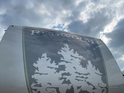 You are going to wish you found the Redwood fifth wheels sooner! With all of the residential comfort and modern luxury, you will be impressed. The Williamsburg Furniture Collection includes two premium dinette chairs, a buffet-style adjustable dinette with leaf extension, a residential-style sofa, and powered theater seating. The luxury further extends to the bedroom where you will find a gel-foam king bed with tilt and C-PAP shelves on both sides of the bed. The straight roof line gives a luxury profile, and there are preparations for a wireless backup camera as well as solar power. The seamless residential insulated heat ducts will efficiently heat your unit, and there is an exterior radio in the fully finished and heated pass-through with slat board storage.