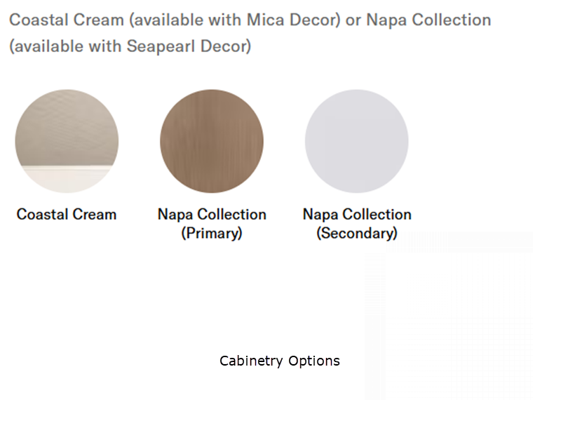 - Napa Cabinets with Sea Pearl Décor and Satin Nickel Hardware