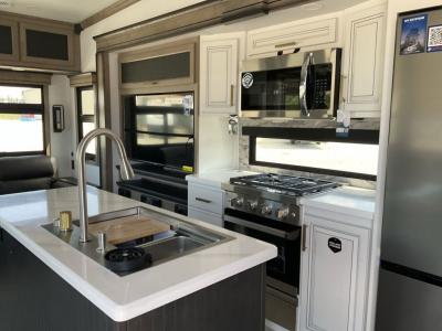 Check out Fun Town RV's amazing deals on high quality new fifth wheels for sale in Illinois, Texas, Oklahoma, and Kansas. We can't wait to help get you into the RV of your dreams today! If you are looking for a luxury towable with all of the top features and floorspace options, you will want to see what the fifth wheel model has to offer. Fifth wheels are a great option for anyone looking to enjoy the freedom and flexibility offered by RVing, but still want some amazing luxury when on the road. With these unique towable RVs, the trailer hitches into your truck bed with a special connector and unhitches so that you can still easily get around when you reach your final destination. These sturdy coaches are known for their durability and maneuverability because of how the hitch is connected. Our new fifth wheels here at Fun Town RV provide you with a smooth ride, but are also well-known for their fine interiors and solid constructions.