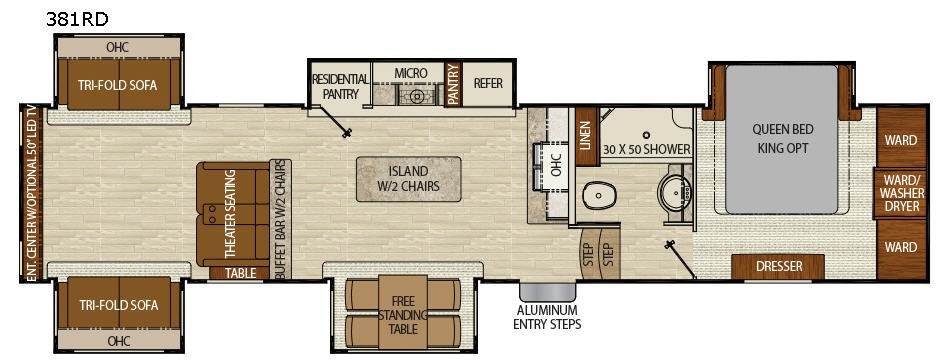 | Refrigerator Size | 8 cu ft | Shower Size | 30" x 50" |