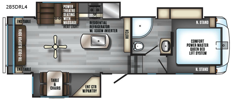 | Fresh Water Capacity | 49 gals | Grey Water Capacity | 84 gals |