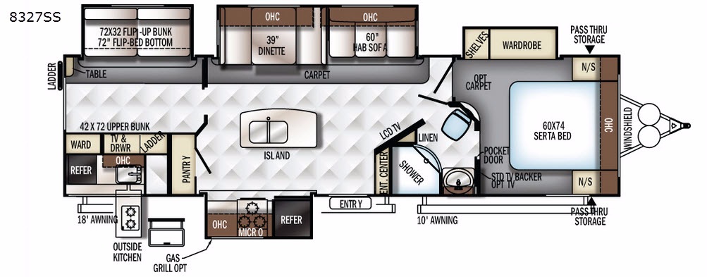 | Fresh Water Capacity | 45 gals | Grey Water Capacity | 90 gals |