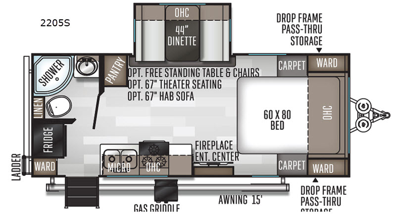 | AC BTU | 13500 btu | Awning Info | 15' Power with Adjustable Rain Dump and LED Lights |