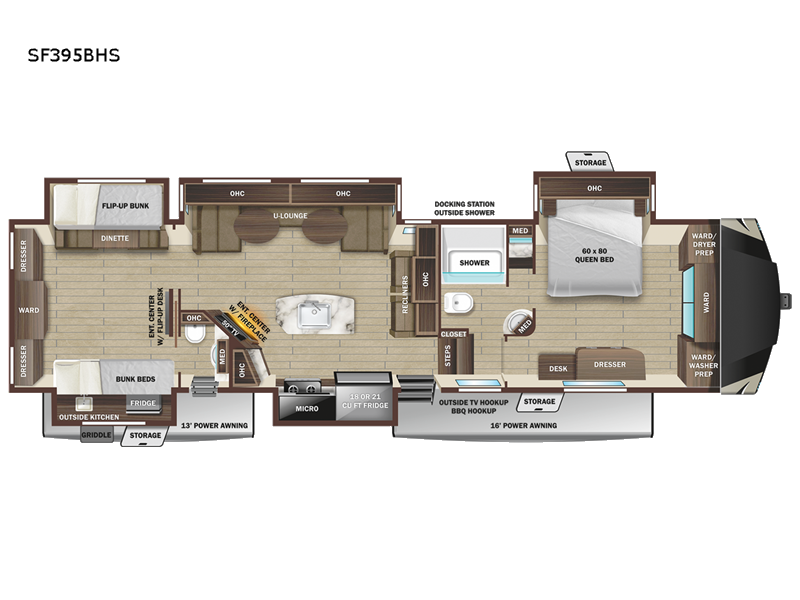 | TV Info | LR 50" LED HDTV | Awning Info | 13' and 16' Power with LED Lights |